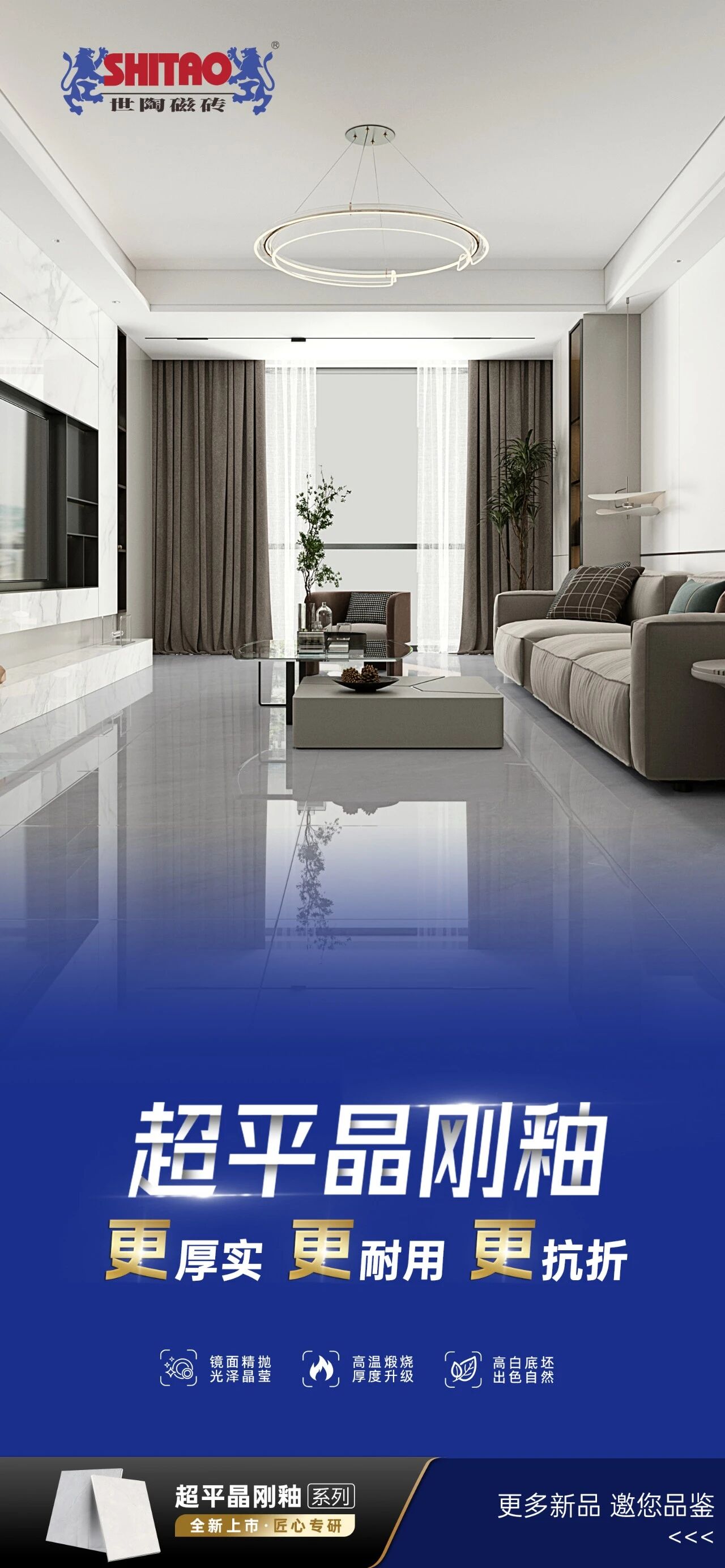 作为专注高端瓷砖研发二十载的世陶磁砖,其核心力作超平晶刚釉系列,凭借对工艺细节的极致追求与技术创新,将 “镜面级视觉质感” 与 “金刚级耐用性能” 深度融合,成为别墅豪宅、星级酒店、高端写字楼及精装公寓等场景的装修首选,重新定义高端瓷砖的品质标准。